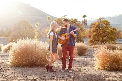 When photographing couples I love to incorporate props that help tell their story. Their bikes, Thom's banjo, Corrie's record player and Thom's records, her camera. I feel that those little details help tell their story rather than distract from it.